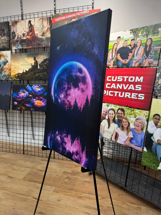 Pink Neon Moon with Reflection Canvas Print